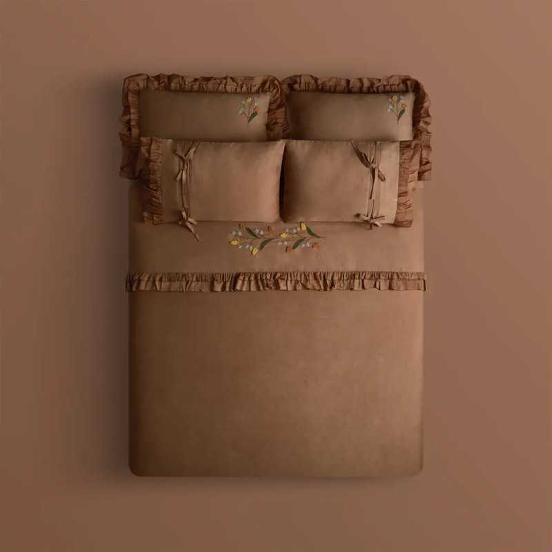 خانه|سرویس ملحفه برند اکوکتان مدل Farah کینگ سایز قهوه ای