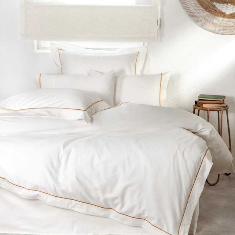 سرویس ملحفه برند اکوکتان مدل Meva دونفره کرم طلایی