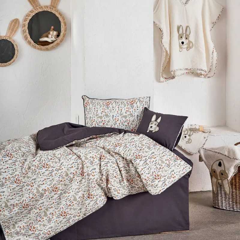 خانه|سرویس ملحفه کودک 4 تکه برند اکوکتان مدل Dagi 100*150 طوسی