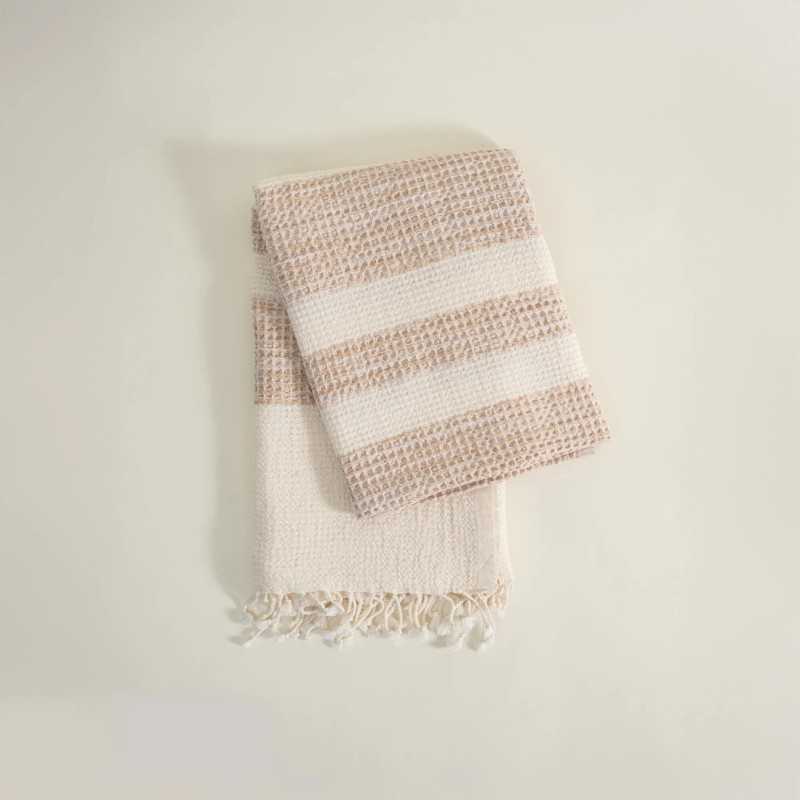 شال مبل ایکرا از برند اکوکتان، ترکیبی از بافت واافل (Honeycomb) و ریسههای دستی در لبههاست که ظاهر آن را طبیعی، گرم و دکوراتیو کرده است. این شال انتخابی سبک، لطیف و قابل استفاده برای روی کاناپه، مبل و حتی بهعنوان throws دکور منزل است.